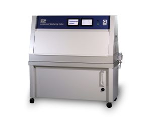 The QUV accelerated weathering tester reproduces the damage caused by sunlight, rain and dew. It simulates the effects of natural sunlight and artificial irradiance using special fluorescent UV lamps in the UVA, UVB, and UVC portions of the spectrum. It simulates dew and rain with condensing humidity and/or water spray.